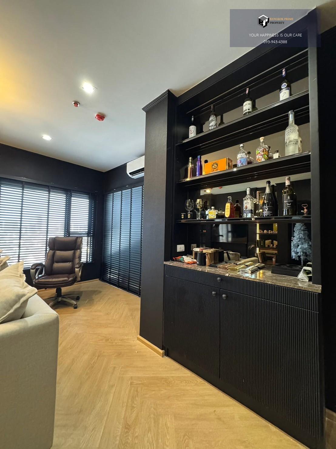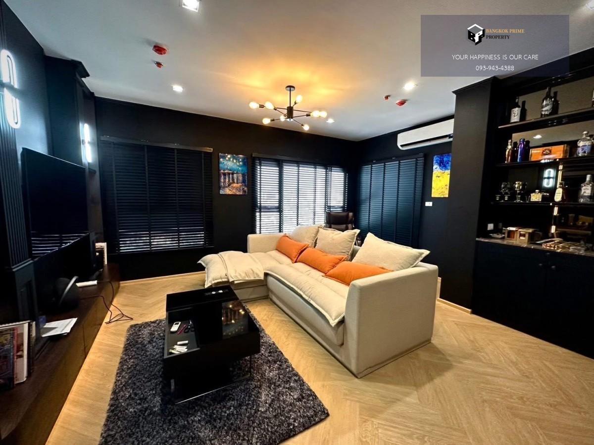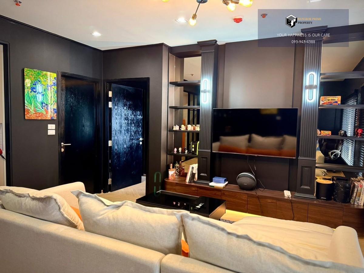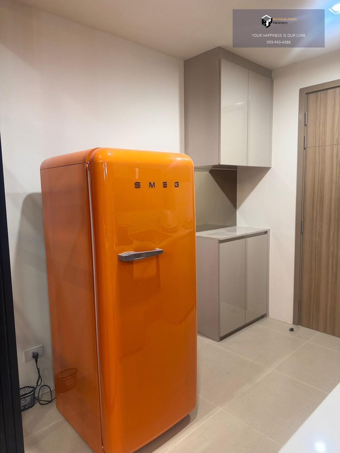 เฟอร์นิเจอร์ แอร์ 2 ตัว เตียง ตู้เสื้อผ้า โซฟา โต๊ะหัวเตียง ทีวีขนาด 55 นิ้ว และทีวี 32 นิ้วในห้องนอน ตู้เย็น smeg ไมโครเวฟ