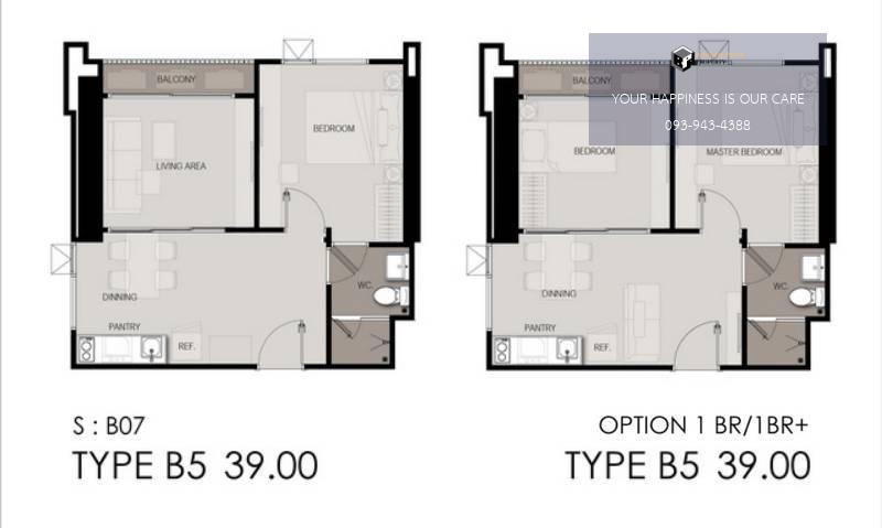 Type : 1 Bed plus (สามารถทำเป็น2ห้องนอนได้) I 1b
